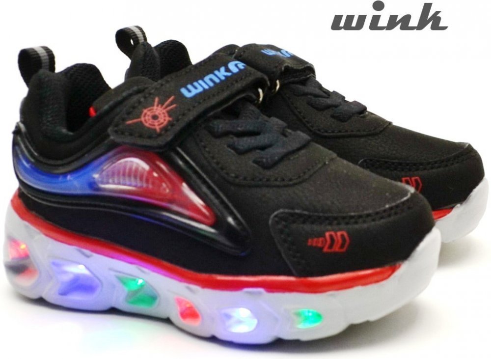 Chlapecké vycházkové boty, které na boku blikají LED světýlka. Velmi lehké, s ohebnou phylonovou podešví, prodyšná, s pevným opatkem. Stélka není vyjímatelná, je pod ní schované zařízení na blikání. Zapínaní na suchý zip, střední střih, vhodné pro střední nožičky. Na baterku uvnitř obuvi se nevztahuje dvouletá záruka.