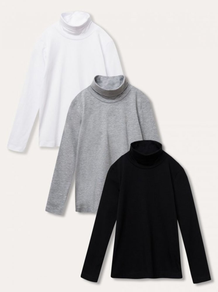 Set 3ks roláků s dlouhým rukávem v barvách černá, bílá a šedý melanž, které se hodí ke každému oblečení. Můžete použít samostatně nebo jako spodní vrstvu v chladných dnech. Vhodné pro dívky i pro chlapce.