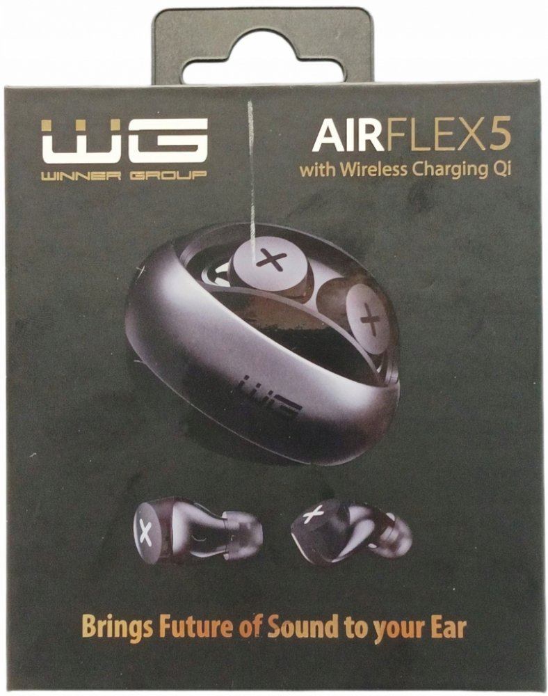 Obsah balení: Bezdrátová sluchátka WG AirFlex 5, nabíjecí pouzdro, 2× náhradní silikonové špunty, kabel USB-A to Type-C, návod k použití.