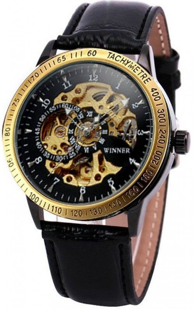 Mechanické hodinky s automatickým nátahem kombinují praktičnost, styl a skvělý poměr cena/kvalita. Automatický strojek poháněný pohyby ruky zajistí chod 24–36 hodin, po delším odložení je lze snadno manuálně natáhnout. Kombinace černého pásku a zlatých prvků působí velmi elegantně. Rotor s vahadlem se stará o průběžné dobíjení během nošení. Ideální volba pro muže, kteří hledají funkčnost a design za dostupnou cenu. Průměr ciferníku - 42,5 mm Šířka řemínku - 20 mm Tloušťka těla hodinek - 14.5 mm Pouzdro hodinek : Obecný kov Řemínek: PU / umělá kůže Barva řemínku: černá Sklo: tvrzené minerální Voděodolné - 3ATM stříkající voda / déšť- neponořovat do vody Váha: 122 g Max. obvod - 23 cm Barva ciferníku: černá/ zlatá