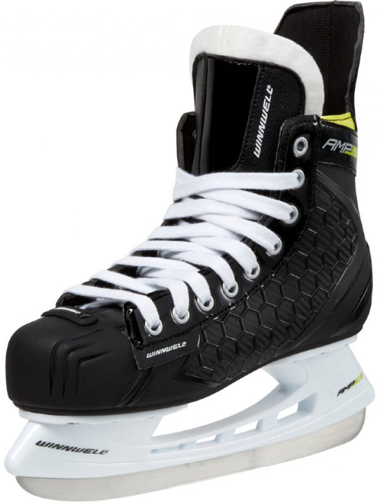 Brusle Winnwell AMP500 SR jsou hokejové brusle určené pro rekreační hráče, kteří chtějí kvalitní a spolehlivé brusle. Brusle Winnwell AMP500 SR jsou hokejové brusle určené pro rekreační hráče, kteří chtějí kvalitní a spolehlivé brusle. Popis: Polykarbonátový čtvrtobal Kartáčovaná nylonová podšívka s úpravou NXT Pohodlný plstěný jazyk Tvarovaný horní uzávěr Nůž z nerezové oceli Pro potlačení nežádoucího zápachu výstroje je použita patentovaná technologie Winnwell Cleansport NXT. Tato patentovaná technologie dokáže bezpečně a zdravotně nezávadně odstranit zápach z hokejové výstroje. Kotva tabulky velikostí