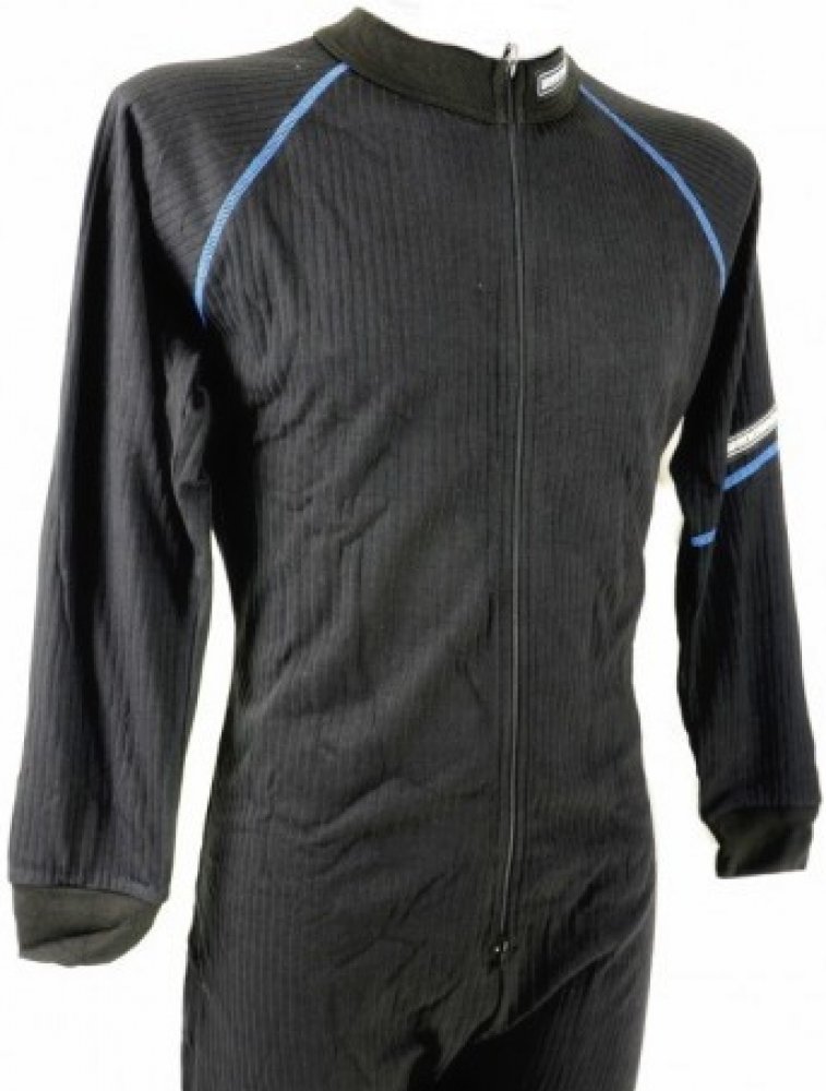 Funkční jednodílné ribano Winnwell, dobře padnoucí, pohodlné, s plochými kontrastními švy. Vzdušný, příjemný materiál odvádí vlhkost od těla a zabraňuje tak prochladnutí organismu. Ploché švy zaručují komfort a zabraňují nepříjemným otlakům. S dlouhými rukávy a nohavicemi a zipem s dvěma jezdci. Barva: černá, modré/oranžové švy