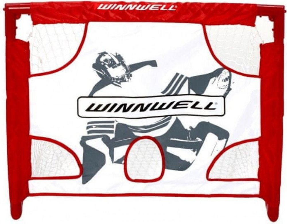 Dětská skládací branka na hokej Winnwell Mini Set PVC. Malá hokejová branka s plastovou konstrukcí. Součástí balení branky jsou dvě plastové hokejky, míček, plachta brankáře a přenosný vak. Nejmenší branka z kolekce značky WINNWELL. Branka je již složená, nemusíte natahovat síť, plachtu, ani montovat konstrukci. Branku pouze rozložíte během několika sekund a můžete začít hrát.