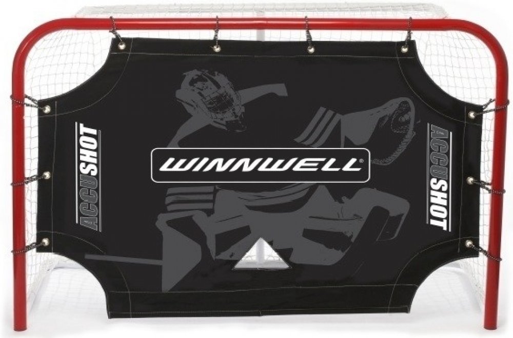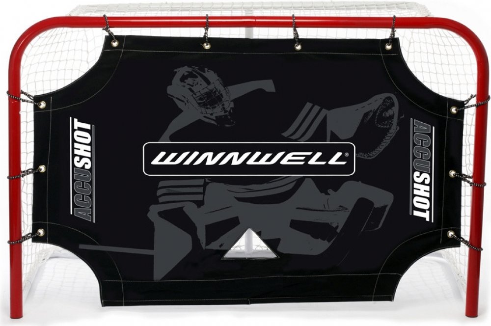 Materiál: polyester a PVC Skvělá pomůcka pro nácvik střelby. Střelecká plachta Winnwell Accushot 60“ je určena pro rozměry 60" x 44" x 24" (152cm x 112cm x 61cm). Díky čtyřem dírám v rozích a jedné uprostřed parádně supluje brankáře a lze tak perfektně nacvičit přesnost střelby do míst, kam nejvíce padají góly.