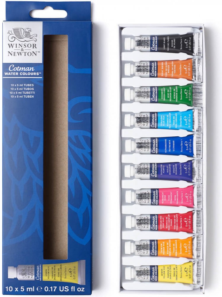 Winsor & Newton Akvarelové barvy v tubě Cotman, sada 10 ks