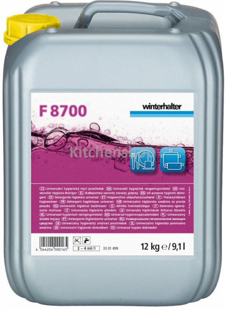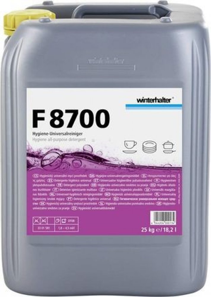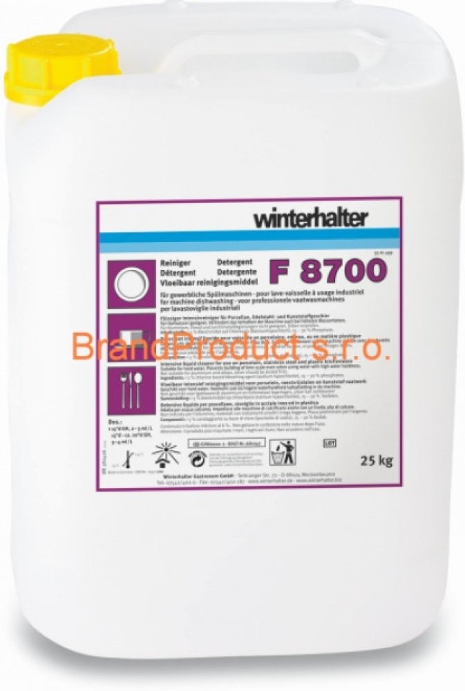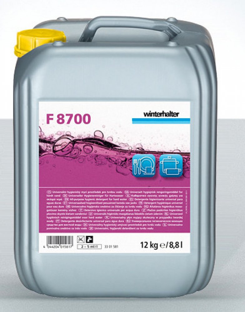 Winterhalter F 8700 je tekutý, alkalický mycí prostředek s aktivním chlorem určený především pro tvrdou vodu. Přípravek je vhodný pro profesionální myčky podstolové, průchozí myčky, myčky s automatickým posuvem košů i pásové myčky v profesionálních kuchyních. Je použitelný pro nádobí všeho druhu. Ze skla, porcelánu, plastu i nerezu. Winterhalter F 8700 spolehlivě odstraňuje zaschlé zbytky jídla, s...