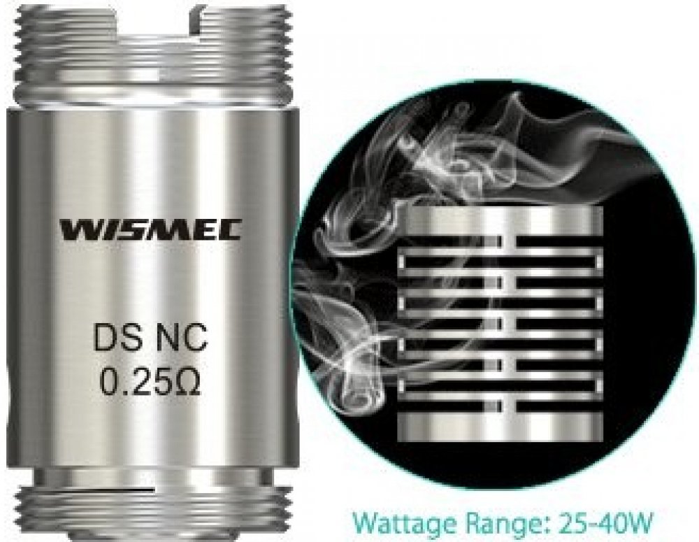 Žhavící tělísko Wismec DS NC je složeno z jedné NC spirálky s odporem 0,25ohm. Toto žhavící tělísko je určeno pro clearomizér Wismec Orma a elektronickou cigaretu Wismec Motiv. Žhavící tělísko lze používat pro přímé potahování rovnou do plic.