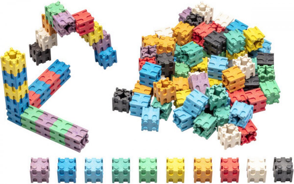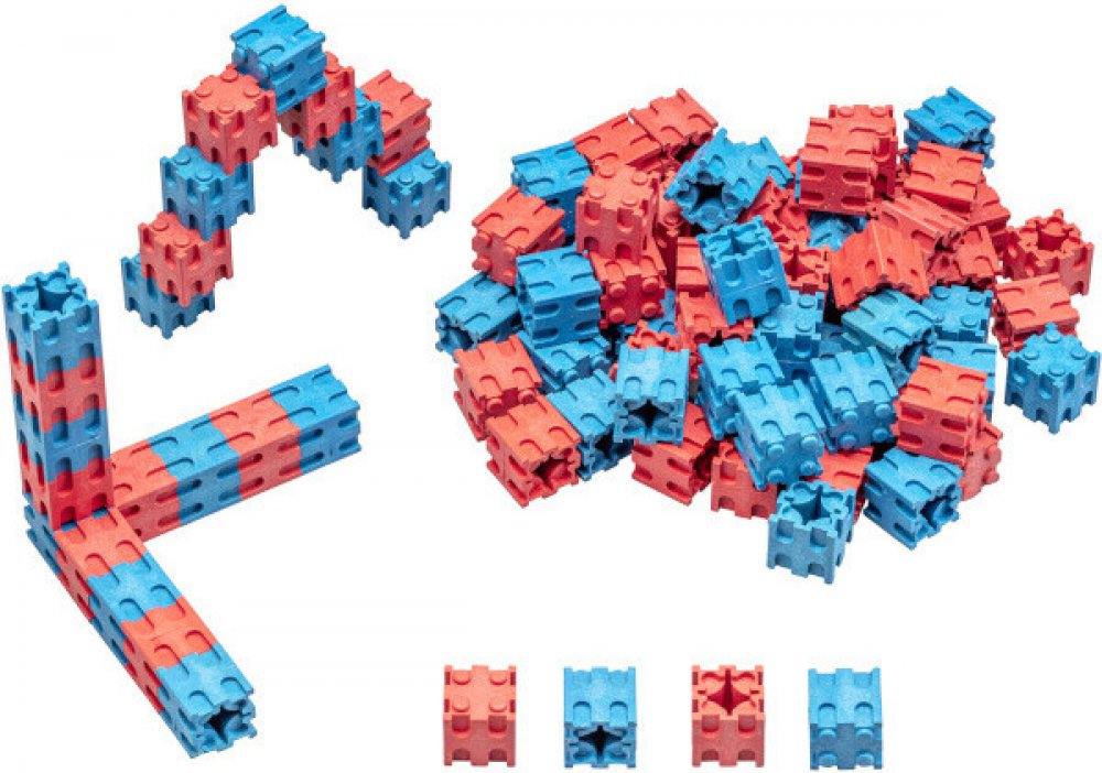 Hledáte jednu sadu; se kterou děti staví; hrají si a zároveň trénují matematiku; logiku i spolupráci? Spojovací kostky v červené a modré barvě jsou k tomu jako stvořené. V balení je 100 spojovacích kostek z RE-Wood®; každá o hraně 2 x 2 x 2 cm. Kostky lze zacvakávat ze všech stran i posunutě; takže děti vytvářejí věže; mosty; zdi; zvířata i abstraktní tvary. Díky kombinaci pouze dvou barev (50 čer...