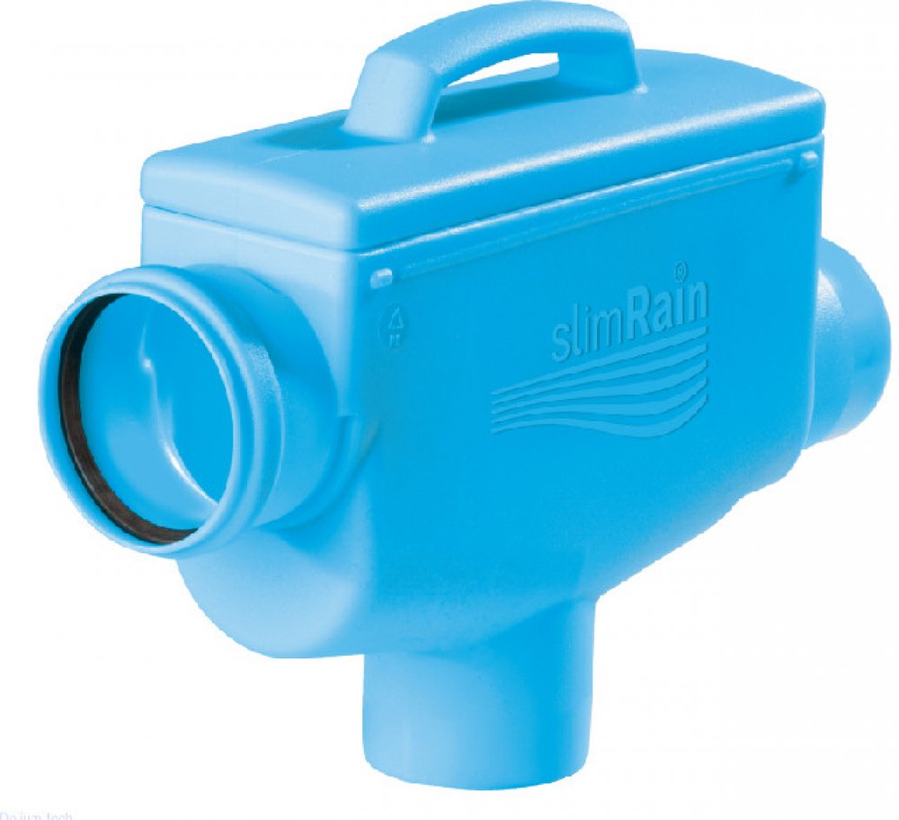 Pro novostavbu i dodatečné použití. SlimRain filtr 110 se snadno umístí a nevyžaduje žádné zemní práce. Mezi nátokovým potrubím dešťové vody a potrubím pro odtok nečistot je rozdíl pouhých pět centimetrů. Díky nepatrnému výškovému rozdílu se dá filtr slimRain 110 snadno zabudovat i do stávajícího potrubí. Může být umístěn do nádrže, aniž by ovlivnil spád potrubí.