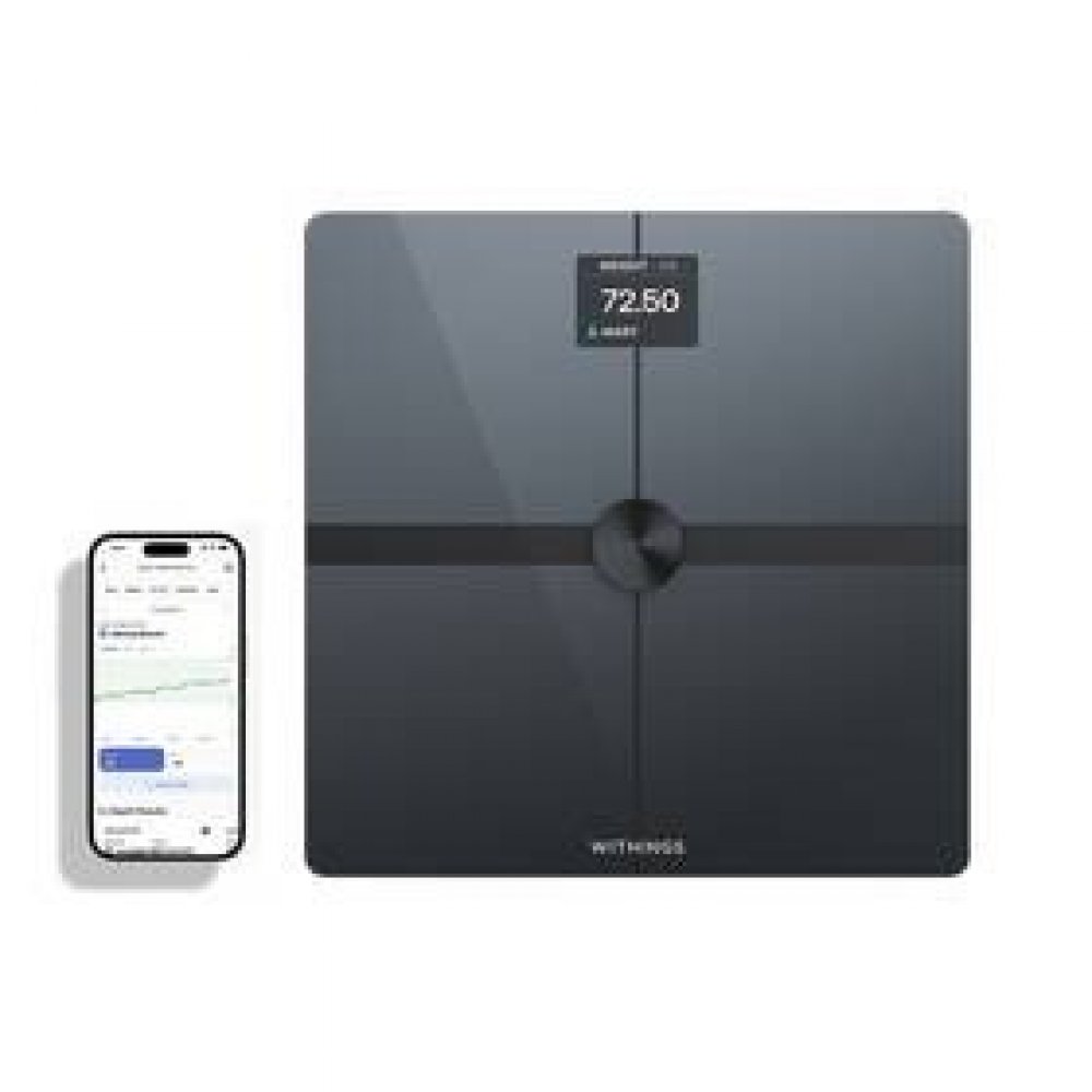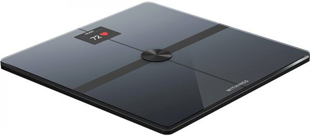 Osobní váha - diagnostická, 4 senzory hmotnosti, sledování aktivity, spánku, váhy. Analýza složení celého těla. Měří s přesností na 50g. Využívá Bluetooth, Wi-fi. Přehledný displej. Měření EKG. Sleduje až 8 uživatelů. Rozměry: 325 x 325 x 25,6 mm.
