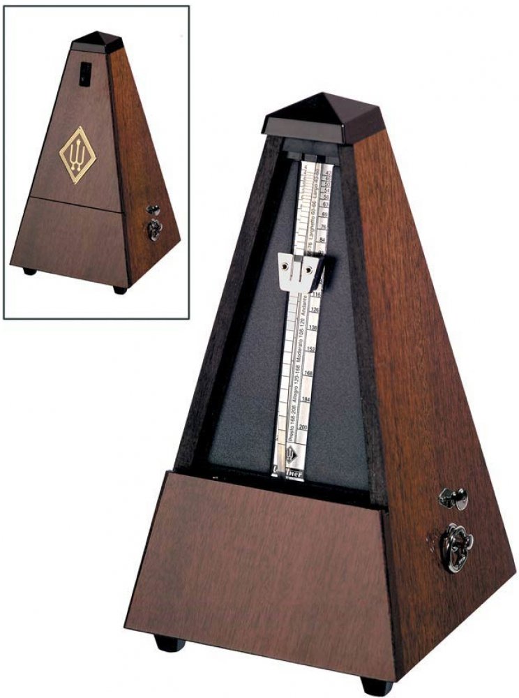 Mechanický metronom Wittner v klasickém provedení ve tvaru pyramidy. Esteticky zdařilé provedení z pravého dřeva.