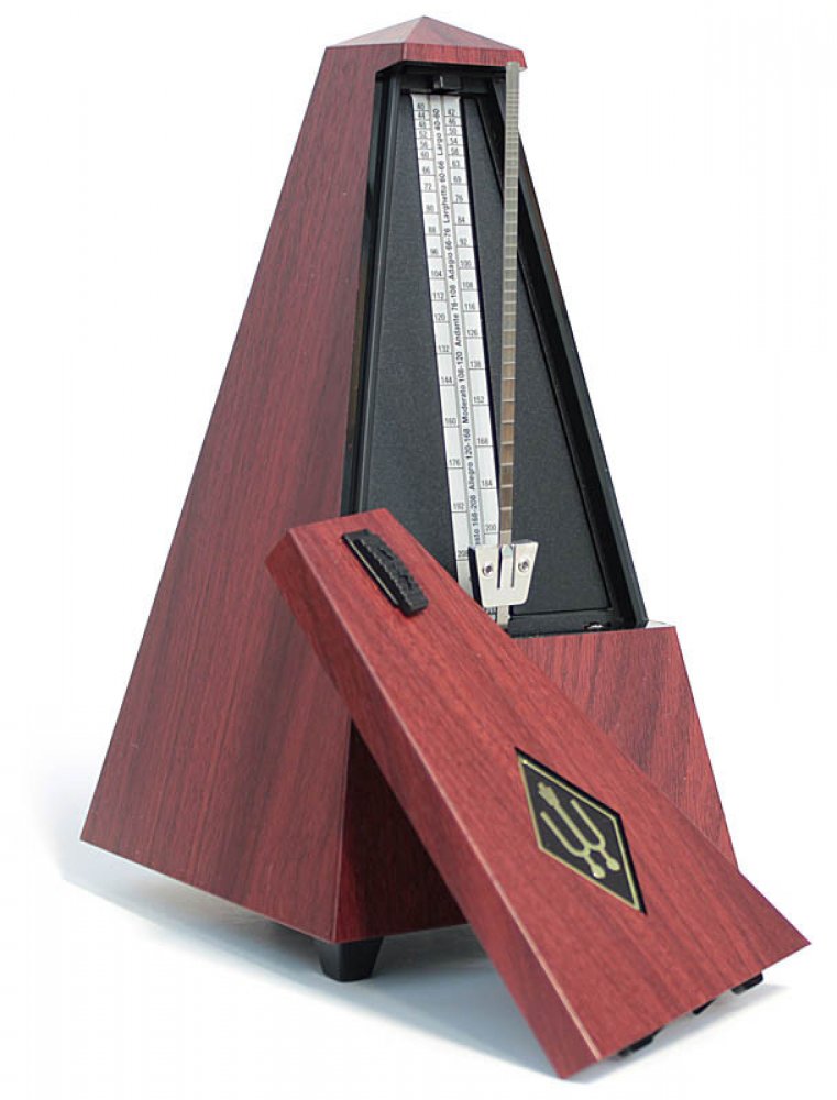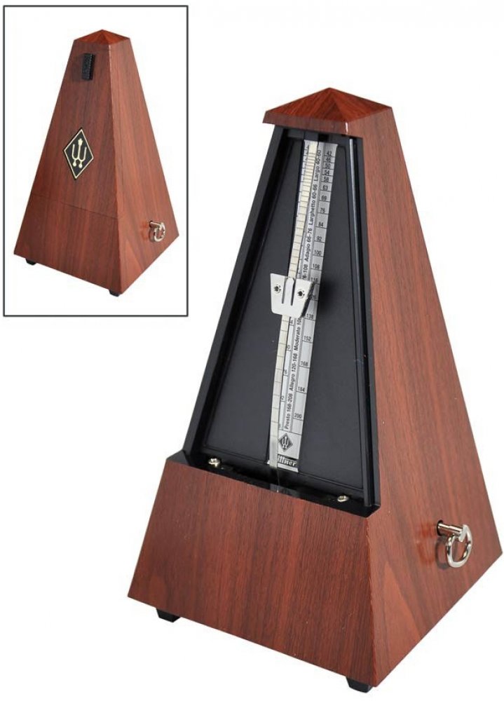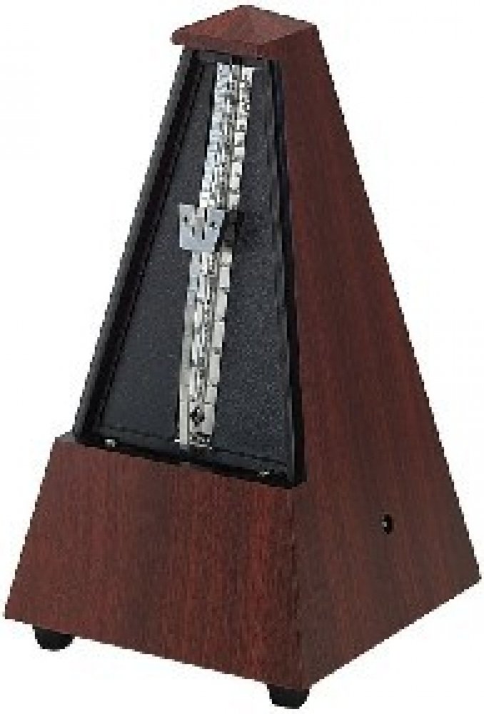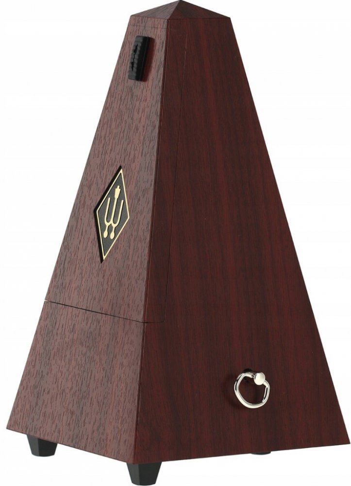 Mechanický metronom Wittner v klasickém provedení ve tvaru pyramidy. Plastový kryt zhotovený jako imitace pravého dřeva. - Materiál: plast - Mahagon (imitace) - Provedení bez zvonku