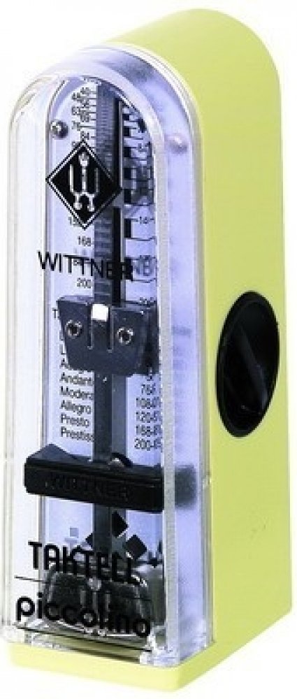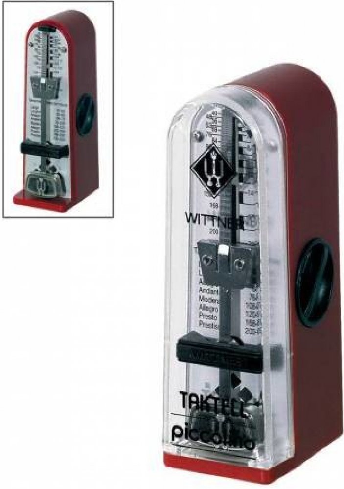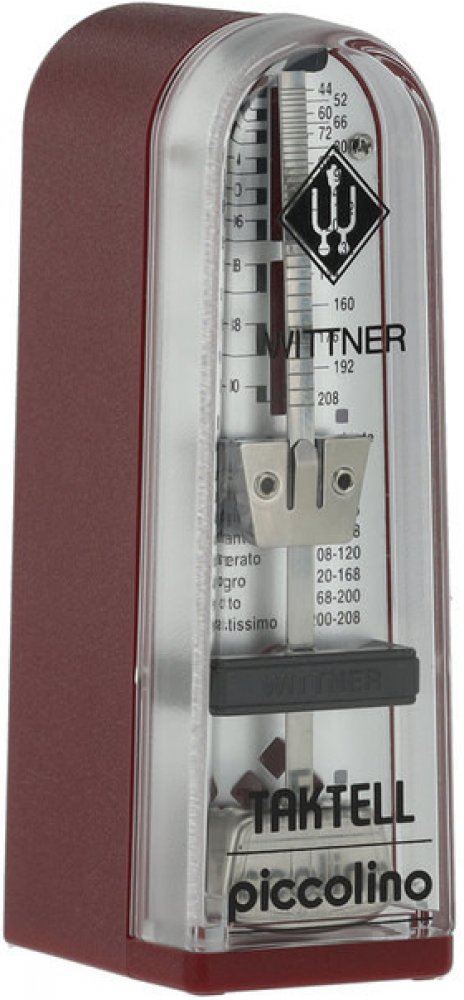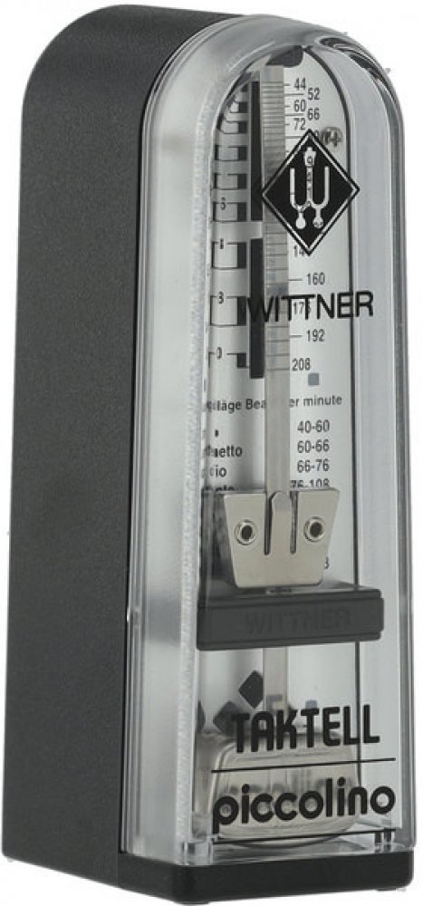 Mechanický metronom Wittner Piccolino v nejmenší variantě. Vhodný jako cestovní metronom pro přenášení v pouzdře u nástoje. Kryt je vyroben z plastu dostupného v několika barevných variantách.