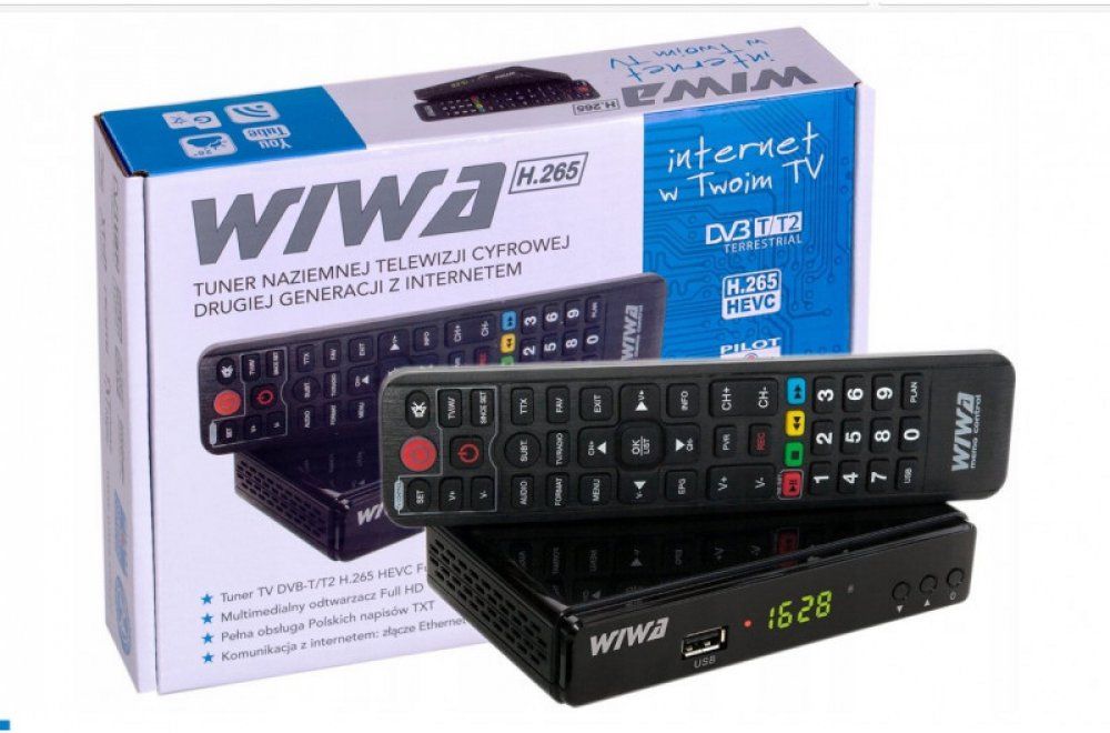 Set-top box WIWA DVB-T2 H.265 HEVC je nový výrobek, který lze použít pro příjem pozemního vysílání televize v nové vysílací normě DVB-T2 H.265/HEVC. Mimo nové normy samozřejmě umí přijímat i vysílání ve starších normách DVB-T H.264 i MPEG-4, ve kterých se aktuálně ještě vysílá. Přístroj má dokonalou kvalitu obrazu ve vysokém rozlišení Full HD 1080p. Po připojení externího harddisku pomocí konektoru USB je možné nahrávání televizních a rozhlasových programů v nezakódované formě. Přístroj disponuje oblíbenou funkcí PVR nahrávání, Timeshift, přehrávání multimédií, EPG programovým průvodcem, časovačem a navíc podporuje připojení k internetu pomocí místní sítě (LAN), či Wi-Fi 2.4 GHz. Divák tak získává možnost sledování online videí, služeb IPTV, RSS zpráv či počasí. Uživatele navíc potěší i profesionálně zpracovaný dálkový ovladač.