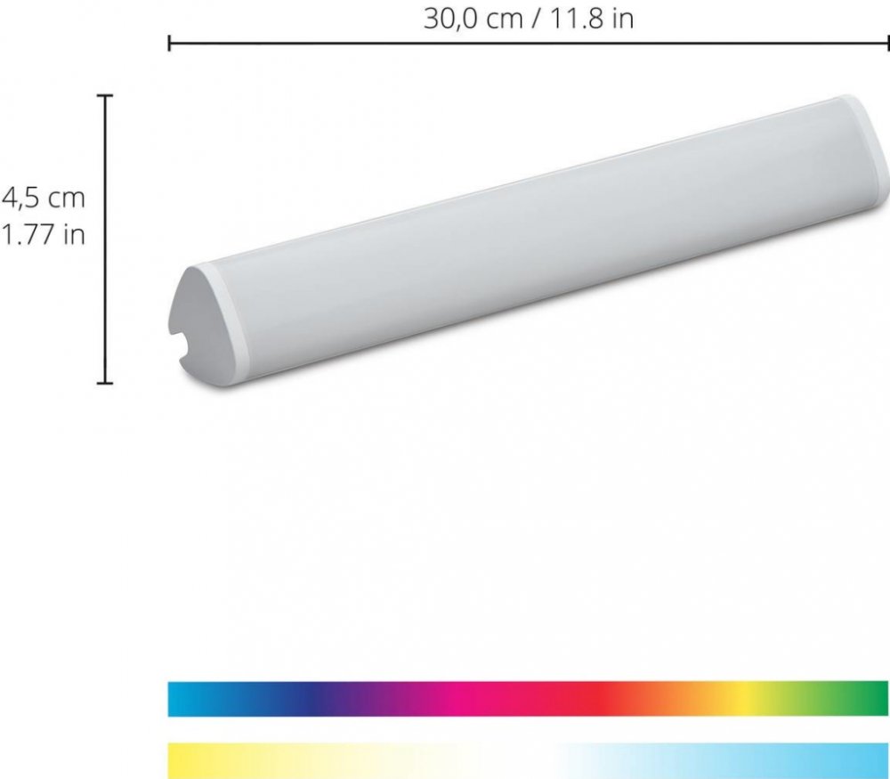 Se stolní lampou LED Light Bar lze určitá místa v místnosti zvláštním způsobem zdůraznit a zvýraznit. Podlouhlou stolní lampu stačí umístit ve svislé nebo vodorovné poloze a připojit ji pomocí kabelu se zástrčkou. V aplikaci WiZ pak lze nastavit různé úrovně jasu nebo barvy a k dispozici jsou také předinstalované dynamické světelné scény, například "Krb" nebo "Oceán". Technické údaje / kompatibilita: - Lze integrovat prostřednictvím sítě WLAN; most nebo brána nejsou nutné - Lze ovládat pomocí chytrého telefonu nebo tabletu s aplikací WiZ pro iOS (verze 11.).0) a Android (od verze 4.4) na místě nebo na cestách (nutné připojení k internetu) - alternativně lze ovládat pomocí dálkového ovladače WiZ, nástěnného vypínače WiZ (k dostání samostatně) - lze nastavit více než 64 000 bílých tónů a 16 milionů jasných barev - různé funkce aplikace (přiřazení místností, místn.) Funkce aplikace (přiřazování místností/scén, vytváření rozvrhů, stmívání, změna teploty světla atd.) - možnost hlasového ovládání (Google Home, Amazon Alexa nebo Apple HomeKit) - integrace v IFTTT pro propojení s dalšími chytrými zařízeními