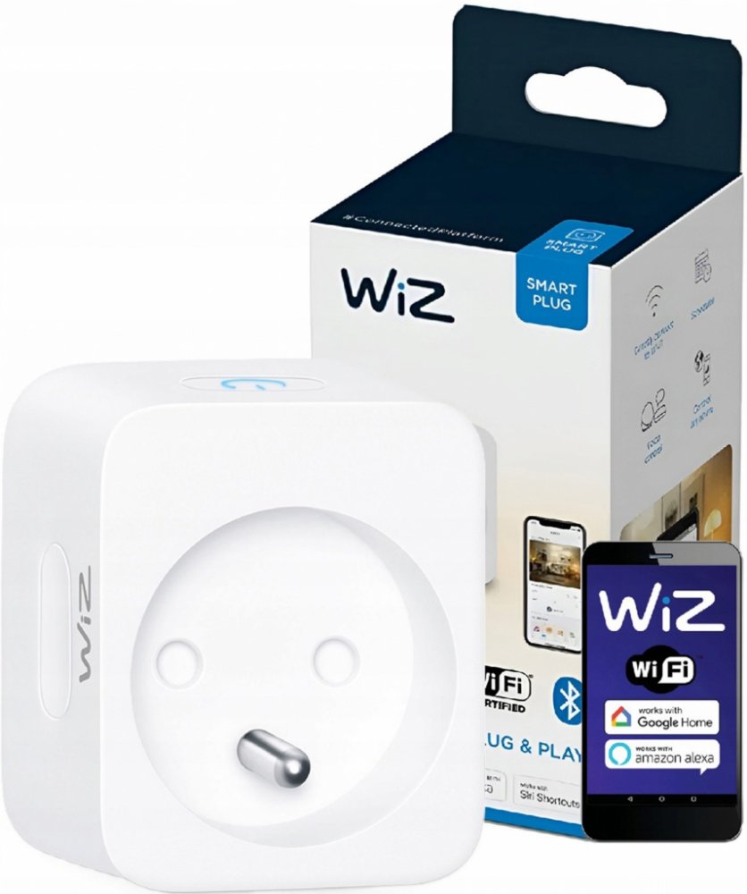 WIZ Smart Plug CZ / SK Chytrá zásuvka WiZ od společnosti Philips určená pro český a slovenský trh o maximálním výkonu 2300 W (2,3 kW) dokáže přetvořit běžné světlo, zařízení či spotřebič v inteligentní. Zároveň je schopna měřit jejich spotřebu elektrické energie. Zástrčku stačí umístit do běžné zásuvky a připojit Vámi vybrané zařízení. Následně jej bude možné ovládat vzdáleně hlasem či pomocí chytré aplikace WiZ, kterou lze jednoduše stáhnout do každého mobilního zařízení. V ní je možné nastavit rozvrh, kdy bude zařízení zapnuté tak, aby to vyhovovalo Vašemu každodennímu režimu a zároveň šetřilo elektrickou energii. Už si nebudete muset dělat starosti s tím, zda jste doma nechali světla či spotřebiče zapnutá, protože je můžete zkontrolovat svým mobilním telefonem na dálku. Zásuvka je napájena na 220-240 V. Připojíte se k ní přes Wi-Fi připojení či technologii Bluetooth. Podporuje hlasové asistenty Amazon Alexa, Google Assistant a Siri. Je zhotovena z plastu v bílé barvě. Její celkové rozměry činí 5,8 x 5,9 x 4,9 cm. S krytím IP20 je určena do interiéru. Specifikace Obecné specifikace Materiál Plast Barva Bílá Stupeň krytí (IP) IP20 Tvar Hranatý Napětí 230 V Funkce Smart Home Ano Přípojení Wi-Fi .