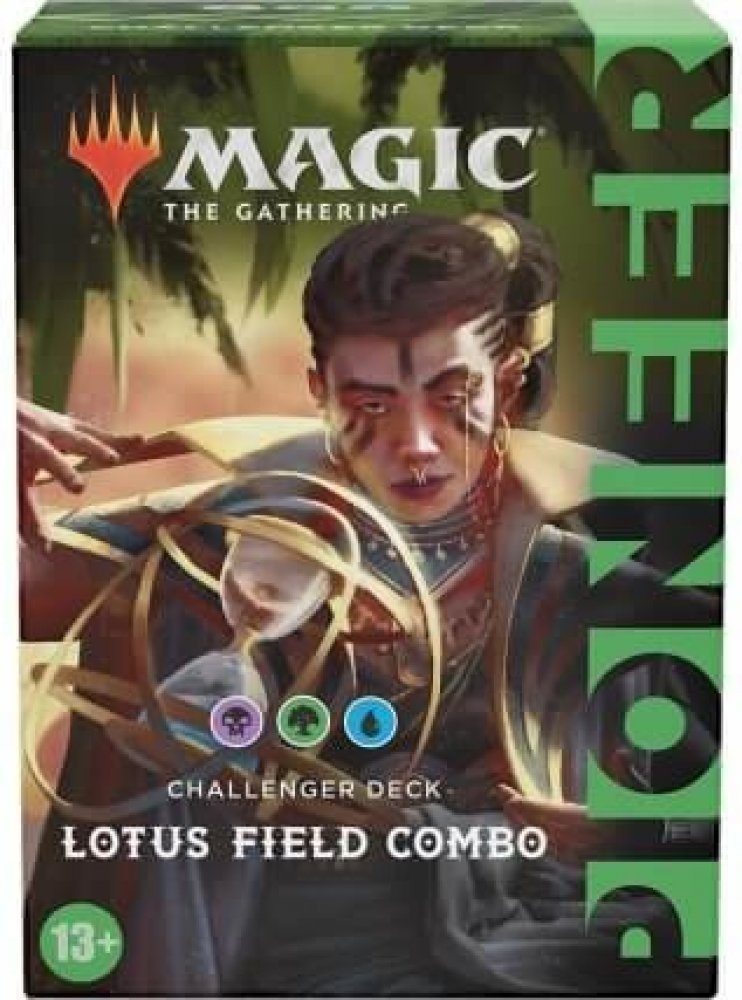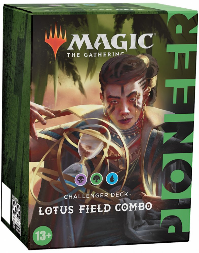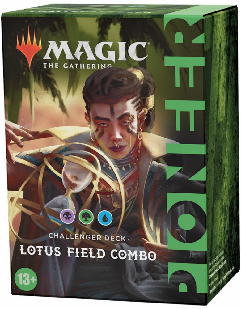 Magic the Gathering Pioneer Challenger deck 2021 - Lotus Field Combo je speciální turnajový balíček, který je po vybalení připraven k okamžité hře. Tento balíček si můžete vzít na FNM nebo lokální turnaj, protože kromě hlavního balíčku obsahuje i kompletní sideboard. Challenger Deck je speciální produkt, který je obdobou Event Decků. Jde tedy o předpřipravený turnajový balíček, se kterým můžete po rozbalení hned začít hrát. Své uplatnění najde na FNM nebo lokálních turnajích, případně při hraní ve skupině kamarádů. Dále poslouží jako skvělý zdroj karet do profesionálního turnajového balíčku. Challenger Decky jsou totiž levnější kopií svých silných bratříčků z formátu Pioneer. Pokud by vás zajímaly podrobnější informace ohledně složení tohoto balíčku, tak seznam všech karet naleznete na oficiální stránce, můžete se tak předem podívat jestli je balíček ten pravý pro vás a jestli se v něm nacházejí karty, které odpovídají vašemu hernímu stylu.Balení obsahuje: