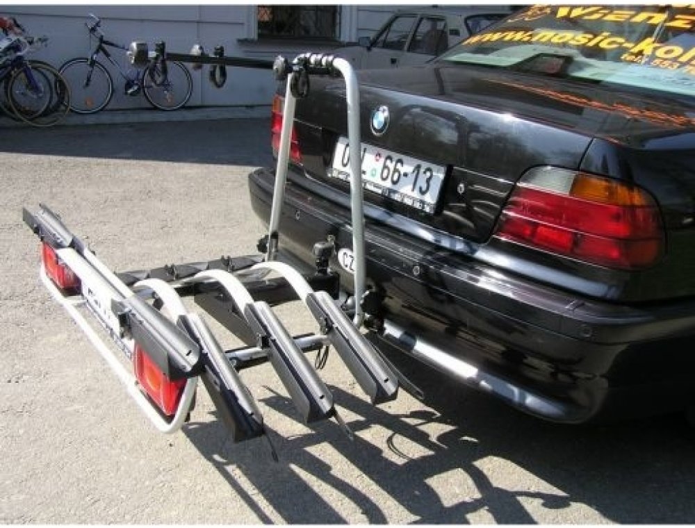 Sklopná funkce nosiče (zatáhnutím za madlo které je umístěno z přední strany mezi světly) umožňuje přístup do zavazadlového prostoru i s upevněnými koly.