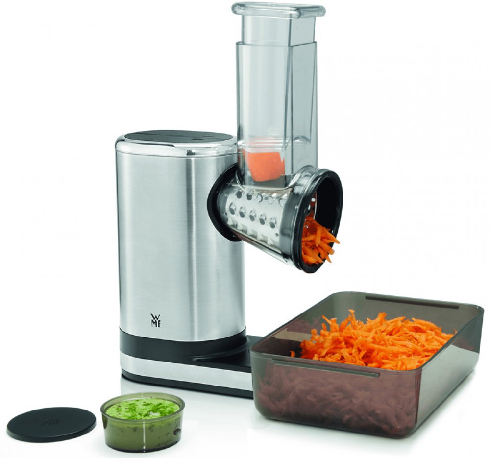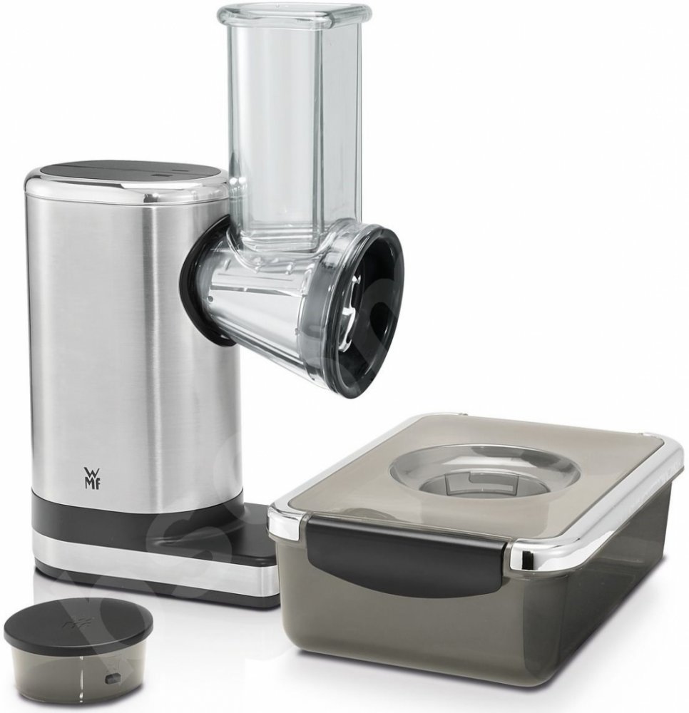 Zařízení značky WMF má v balení posunovač a nádobu na salát, do které lze přemístit strouhanou zeleninu. Je do ní zabudována nádoba na omáčku pro polévání jídla olejem nebo dresinkem. Obě nádoby jsou vyrobeny z plastu bez obsahu BPA.