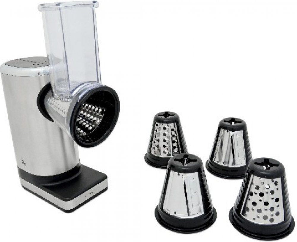 Je vyrobena z z nerezové oceli Cromargan® a plastu a je vybavena 5 vyměnitelnými vložkami pro strouhání a také plátkování (různé tloušťky). Vložky se skvěle osvědčují díky použité technologii WMF Perfect Cut.