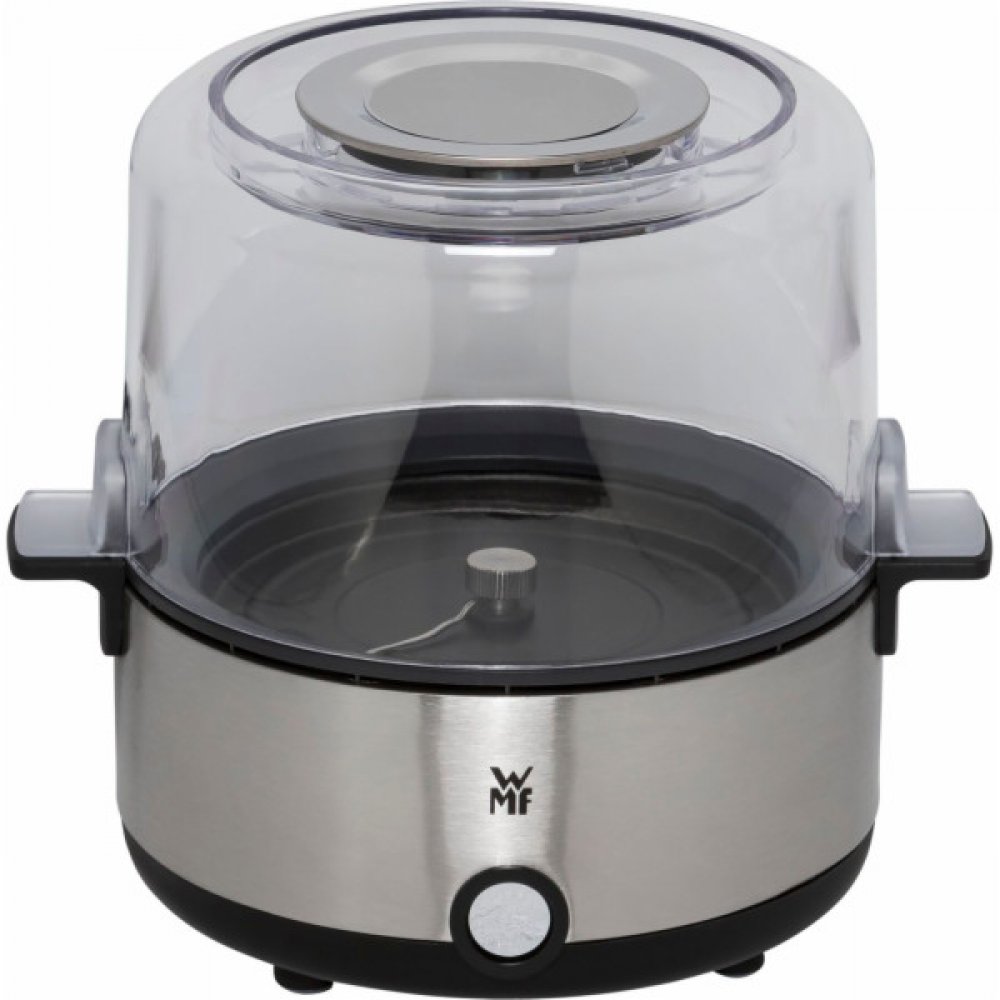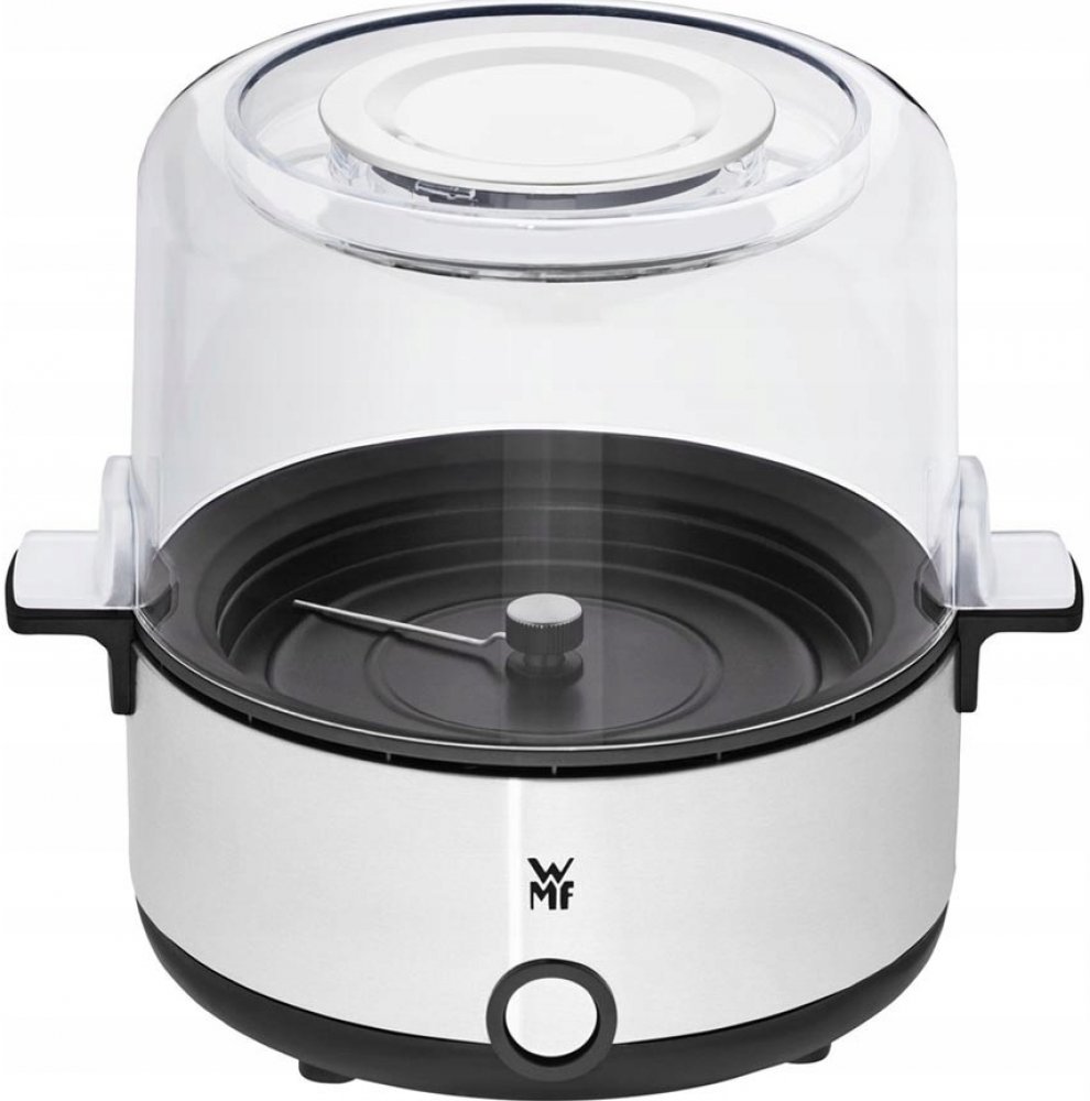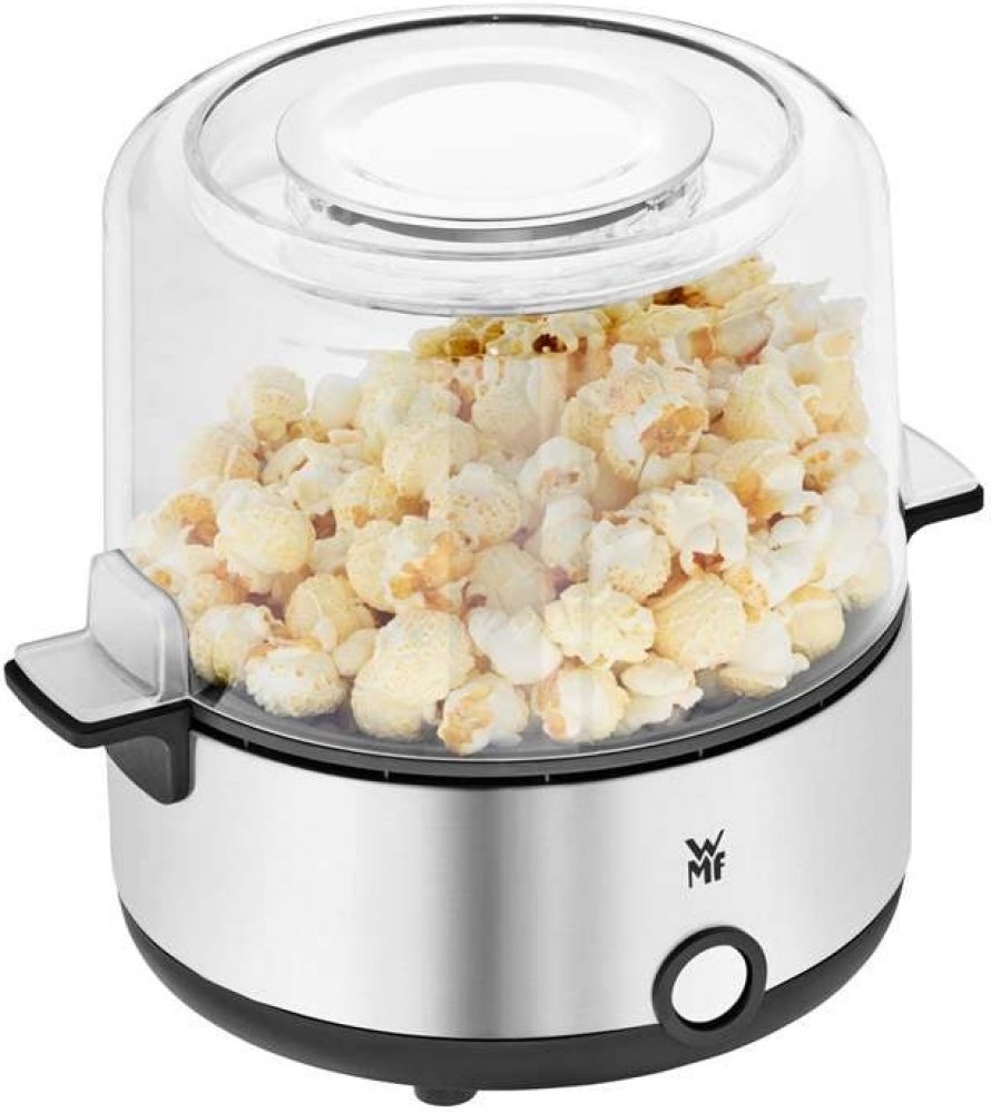Konečně! Domácí filmové večery ve dvou s doma vyrobeným křupavým popcornem. Snadno, rychle a bezpečně – kompaktní a výkonný popkornovač WMF KITCHENminis s kapacitou až 2,2 l pro neomezené potěšení z popcornu během několika minut. Bleskurychlý provoz – otočný mechanismus a nepřilnavý povrch zajišťují rovnoměrnou, nízkotučnou a aromatickou přípravu. Jednoduše přidejte požadovanou příchuť plnicím otvorem ve víku, který také poslouží jako stylová servírovací mísa. Úžasně čisté: žádné ulepené prsty díky WMF Easy Handling. Jednoduše otočte spotřebič dnem vzhůru a nasypte připravený popcorn do servírovací mísy. A co víc, kryt z Cromargan v odnímatelném víku zabraňuje usazování zbytků másla nebo oleje na stole. Praktický bonus: plášť vyrobený z matného materiálu Cromargan a rukojeť zůstávají chladné a lze se jich během provozu dotýkat.