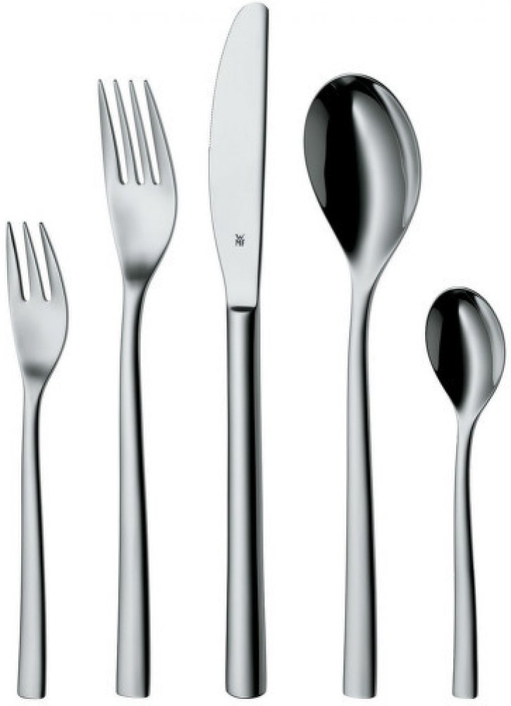 Příbory Palermo, 30 ks - WMF Obohaťte svou každodenní kolekci příborů. Materiál: Nerezová ocel Cromargan® Nerezová ocel Cromargan® je odolná vůči potravinovým kyselinám, korozi i vůči poškrábání. Příbor je ergonomicky navržen a vyvážen pro pohodlnou a příjemnou manipulaci. Vhodné do myčky. Sada obsahuje: 6 x lžička 6 x dezertní vidlička 6 x lžíce 6 x nůž 6 x vidlička Precizní zpracování do posledn...