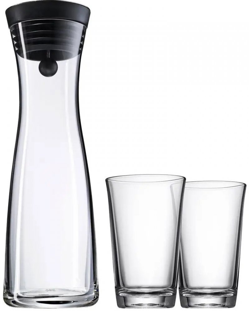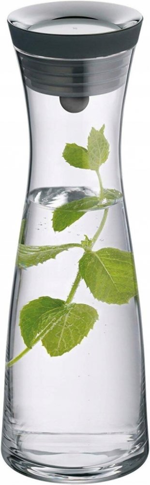 Karafa na vodu ze skla a z Cromarganové nerezové oceli.