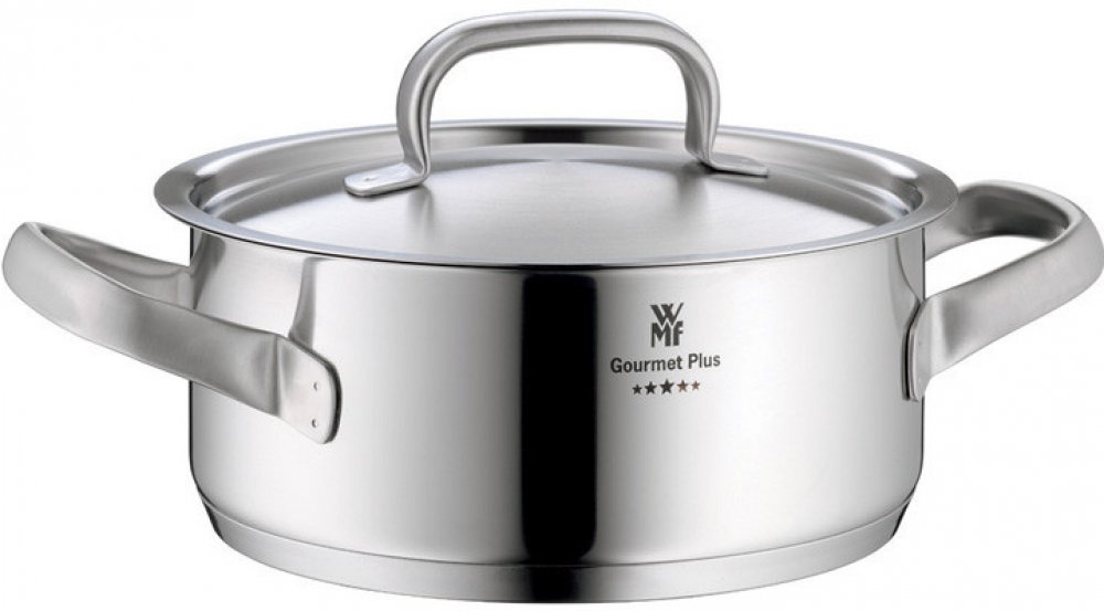 Série Gourmet Plus německé značky WMF je vyrobena z ušlechtilé nerezové oceli Cromargan® v krásném matném provedení. Leptané logo značky s názvem série na stěnách hrnců jim dodává na exkluzivnosti. Nádobí je vysoce funkční a odpovídá zvýšeným požadavkům jak milovníků vaření tak profesionálních kuchařů. Vysoký komfort použití zajišťují velká ucha hrnců, jež jsou navíc hermeticky uzavřená a nepálí.