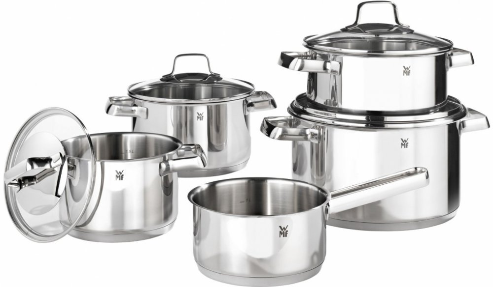 Obsah: 1x fritovací hrnec s poklicí 20 cm (V 2,5 l), 3x hrnec na maso s poklicí 16 cm (V 1,9 l), 20 cm (V 3,3 l), 24 cm (V 5,7 l), 1x kastrol 16 cm (V 1,5 l) - číslo položky: 0751556040Materiál: nerezová ocel Cromargan 18/10, leštěná, bez povrchové úpravy - nerezaví, lze mýt v myčce, je žáruvzdorná a vhodná do trouby do 250 °C (s poklicí 180 °C). SkleniceHrnce bez vodního kamene lze používat na vš...