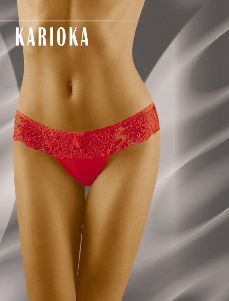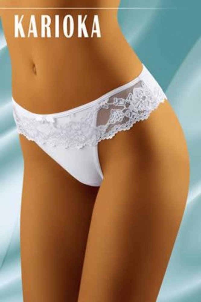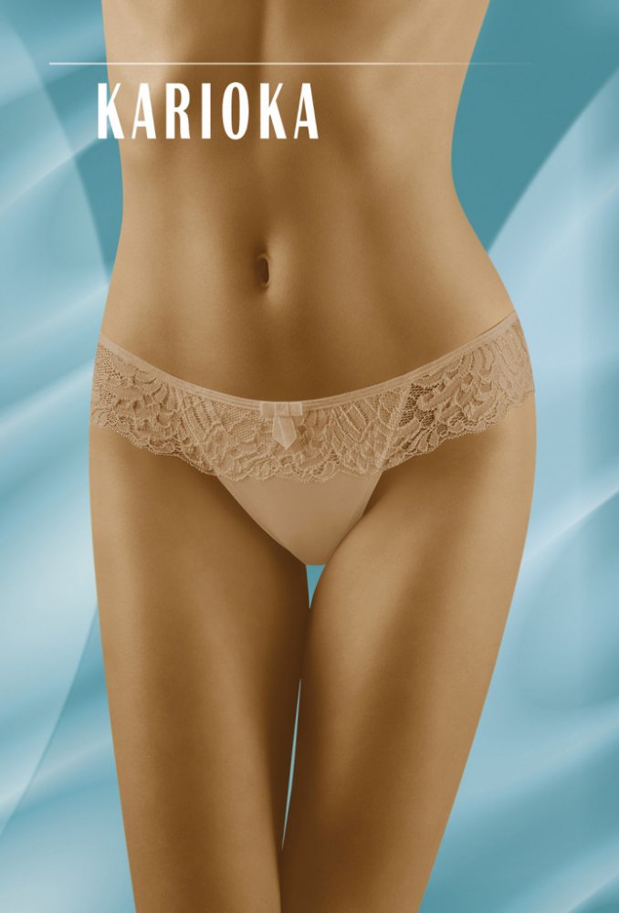 Karioka jsou spodní prádlo pro ženy s jemnou ženskou duší, kterým nejsou cizí krajkové akcenty obtékající boky. Tanga jsou plné sofistikovanosti a květinové dekorace se stávají koketní inspirací pro nový den. Přední část je hladká a dokonale přiléhá k tělu. Ženské a sexy - Karioka je spodní prádlo, které důrazně doporučujeme. Okouzlující vzhled dodává nádherná krajka, která nádherným způsobem zdob...