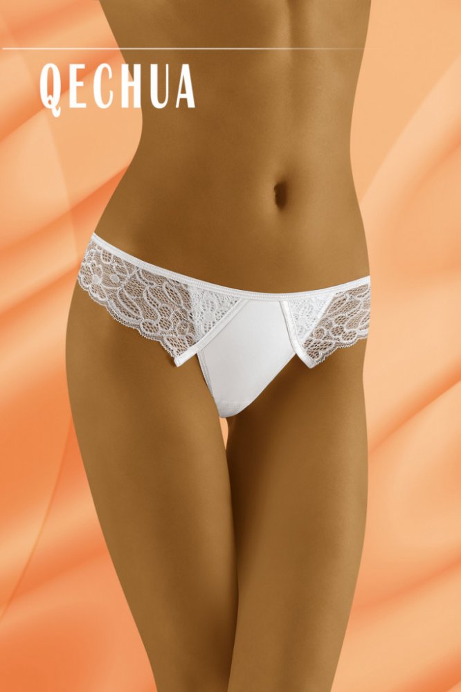 Nádherná krajkové tanga Wolbar Qechua jsou pro ženy cenící si eleganci a pohodlí. Překrásná zadní část přitahuje pozornost každého. Boky a zadní část jsou příjemné k tělu, měnící se krajky. Ze zadu mašlička a lesklá lemovka. Materiálové složení: 83% polyamid, 17% elastan. Dámská tanga Vám nabízíme v bílé a černé barvě.