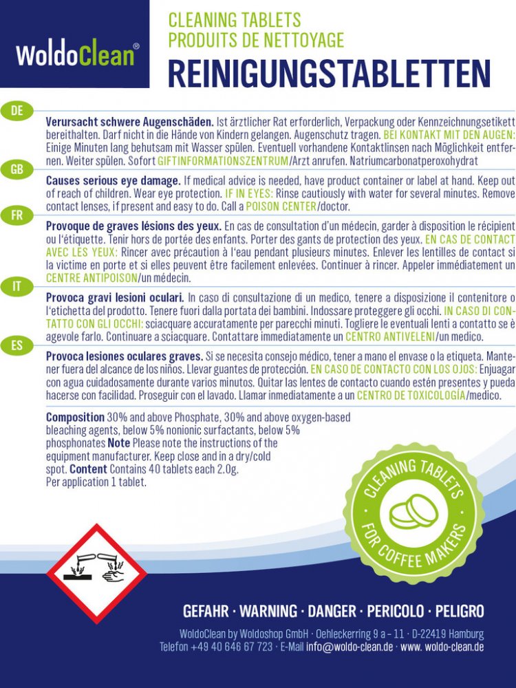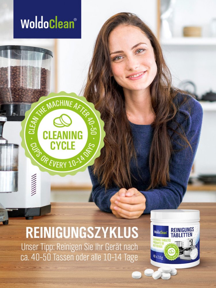 Čisticí tablety WoldoClean nezanechávají žádné zbytky. Po čištění a následném opláchnutí stroje je vaše káva bezpečná.