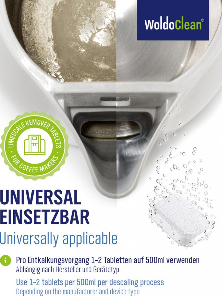 - Pravidelné odvápňování pomocí tablet pro odvápňování WoldoClean zajišťuje dlouhou životnost a energetickou účinnost domácích spotřebičů.
