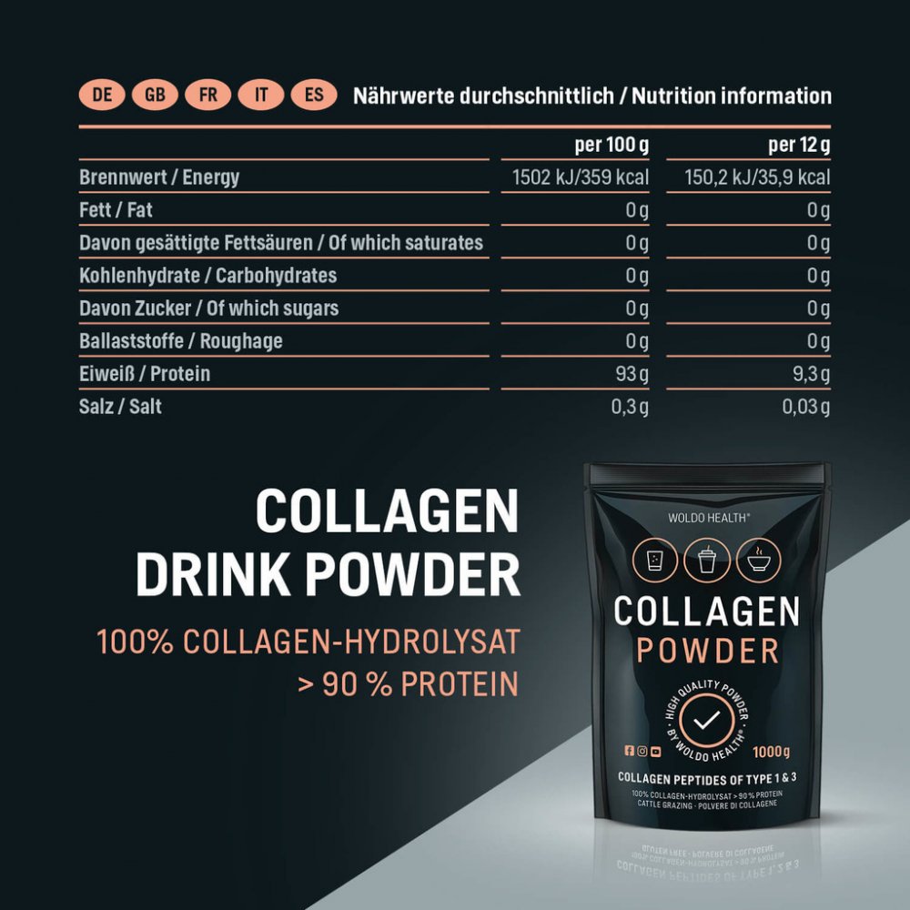 Nejúčinnější kolagen pochází z pastvin v Argentině s certifikací Halal. Je obsažen ve formě hydrolyzátu kolagenu. Jedna doporučená dávka obsahuje až 20 000 mg čistého hovězího kolagenu. WoldoHealth kolagen v prášku je lehce rozpustný ve vodě, či jiných tekutinách, proto je ideální jako zdroj proteinů do smoothie, kávy, polévek, jogurtů či müsli. Je také vhodný pro Keto nebo Paleo diety.