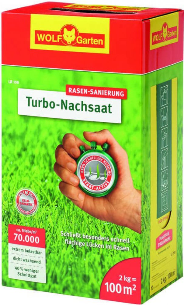 WOLF-Garten směs travního osiva na obnovu a dosev trávníku s turbo intezivním účinkem je určen k dosetí a ozdravení prázdných míst na travní ploše. Obzvláště rychle klíčí, takže si v krátké době budete moci užívat svého vysněného trávníku.