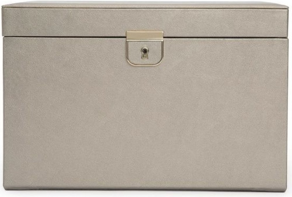 Šperkovnice Wolf Palermo 213078 cínové barvy s šedým interiérem je vyrobena z prvotřídní kůže s kovovými doplňky zlaté barvy. Okouzlující a sofistikované šperkovnice Palermo skvěle poslouží pro stylové vystavení a uložení vašich šperků.