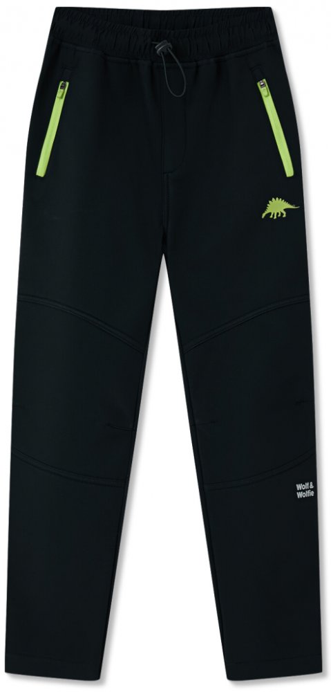 Wolf & Wolfie B2595B Chlapecké softshellové kalhoty, zateplené černá signální zipy