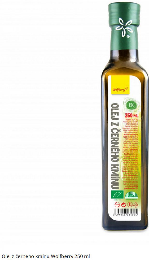Náš olej z černého kmínu je 100 % jednodruhový a neobsahuje žádné levnější oleje ani jiné příměsi, což je častá praxe jiných producentů. Jeho výrobu kontrolujeme a kvalitu garantujeme značkou Wolfberry. Díky své chuti je ideální na dochucení salátů, zálivek, sýrů nebo masa. Výborně se ale hodí i v péči o pokožku, protože na ní vytváří ochranný film, který zadržuje vlhkost uvnitř a tím pleť zanechává hladkou a pružnou.