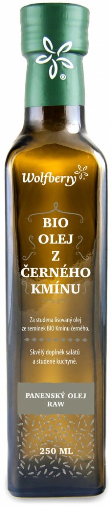Wolfberry olej z černého kmínu se získává lisováním za studena s následnou filtrací. Díky tomu si zachovává okolo 50 % kyseliny linolové, více než 2 % kyseliny eikosadienové a maximální množství dalších důležitých látek, které nejsou zničeny rafinací. Olej má typickou chuť a vůni po černém kmínu.