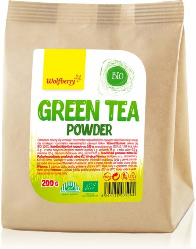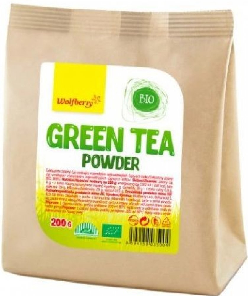 Green tea powder Wolfberry BIO je exkluzivní zelený čaj spojený především s čajovým obřadem Cha-no-yu. Velmi kvalitní, tmavě zelený prášek, který vzniká mletím čajových lístků Tencha. Ty se pěstují výhradně na zastíněných plantážích a musí být z první jarní sklizně.