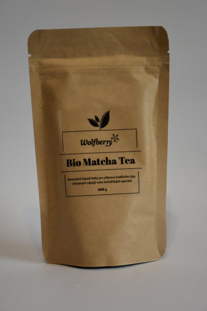 Matcha tea Wolfberry BIO 100 g je exkluzivní zelený čaj spojený především s čajovým obřadem Cha-no-yu. Velmi kvalitní, tmavě zelený prášek, který vzniká mletím čajových lístků Tencha. Ty se pěstují výhradně na zastíněných plantážích a musí být z první jarní sklizně.