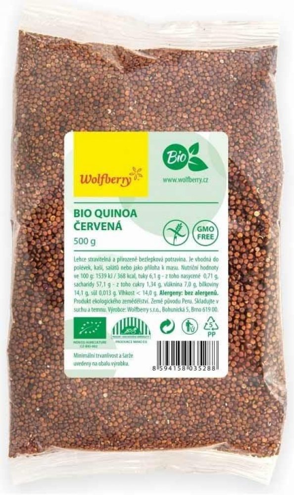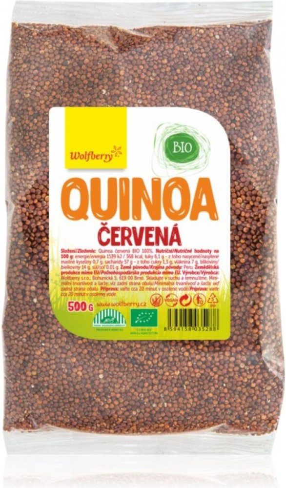 Wolfberry BIO Quinoa červená je v BIO kvalitě. Vaří se podobně jako rýže v poměru 1:2 dílům vody. Asi po 15 minutách získáte výbornou základní surovinu lehce oříškové chuti a mírně křupavé struktury. Tu můžete používat buď jako přílohu k pokrmům, zavářku do polévek, nebo ji přimíchat k salátům, zapéct spolu se zeleninou, udělat z ní karbenátky. Vaší fantazii se zkrátka meze nekladou.