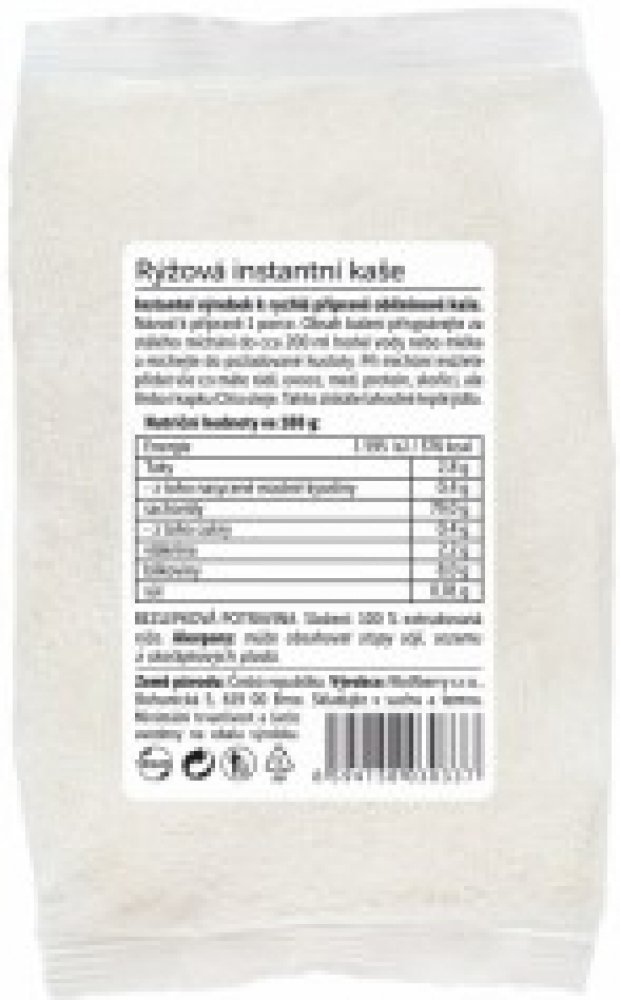 Neochucená jemná a lehká instantní rýžová kaše je neocenitelným pomocníkem v každé kuchyni. Je lehce stravitelná, během okamžiku připravená a každý si jí může dochutit podle vlastní fantazie. Je vyrobena z přirozeně bezlepkových surovin.