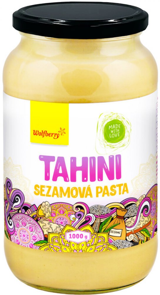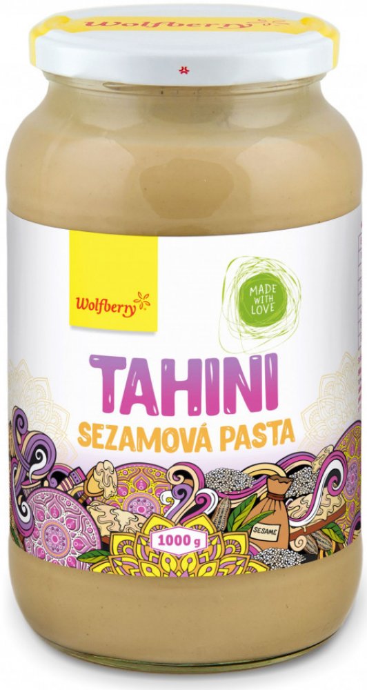 Nesolená pasta z jemně mletých pražených sezamových semínek. Wolfberry Tahini sezamová pasta se skvěle hodí do většiny pomazánek na bázi vařených luštěnin nebo ji lze přidat do pokrmů z cizrny. Vhodná je také do salátových zálivek, pomazánek a omáček. Lze ji použít jako dip k nakrájenému ovoci či zelenině. Smícháním sezamové pasty s datlovou pastou vytvoříte výtečnou pomazánku.
