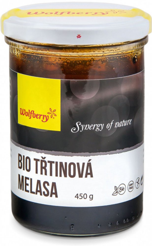 Wolfberry Třtinová melasa BIO 450 g. Třtinová melasa je vedlejší produkt při výrobě cukru z cukrové třtiny a velmi často se jí zcela oprávněně říká "černý zázrak". Jedná se o tmavohnědou až černou tekutinu konzistence hustého sirupu, která má velmi specifickou chuť zkaramelizovaného cukru a někomu může vzhledově malinko připomínat i lesní med. Třtinová melasa vzniká po třetí extrakci, nebo chcete-li krystalizaci cukrové třtiny a jedná se o 100% přírodní produkt, který sice obsahuje méně sacharidů než třtinový cukr, zato v melase zůstává víc stopových prvků, přičemž za zmínku stojí například draslík, vápník a hořčík. Další velkou výhodou je i to, že melasa obsahuje méně kalorií než med a běžný rafinovaný cukr. V oblastech, kde se cukrová třtina pěstuje, patří dodnes melasa k hlavním pokrmům domorodců. Ti si ji ale neváží jen jako sladidla a neocenitelného zdroje mnoha enzymů, organických látek a stopových prvků důležitých pro organismus, ale využívají ji i na mnoho svých neduhů. Kromě konzumace si z melasy ale můžete udělat i prvotřídní pleťovou masku, která dodá vaší pleti šmrnc a neuvěřitelně ji rozjasní. Naneste neředěnou melasu na obličej a krk, nechejte asi 30 minut působit a poté ji dobře opláchněte. To teprve uvidíte, jaké umí melasa divy i při zevním používání a proč se jí říká "černý zázrak“! Wolfberry třtinová melasa je výborné, nesířené a neředěné sladidlo v BIO kvalitě. Látky obsažené v melase tak jsou v přirozené přírodní formě, což umožňuje jejich snadné vstřebávání. Melasa je vhodná i pro děti, seniory, sportovce a pro těžce manuálně pracující osoby. Melasa je snadno rozpustná a perfektně se hodí k dochucení různých kaší, mléčných výrobků, domácího müsli a všech typů nápojů. Doporučená denní dávka: 2-4 čajové lžičky Složení: Třtinová melasa BIO 100 %.