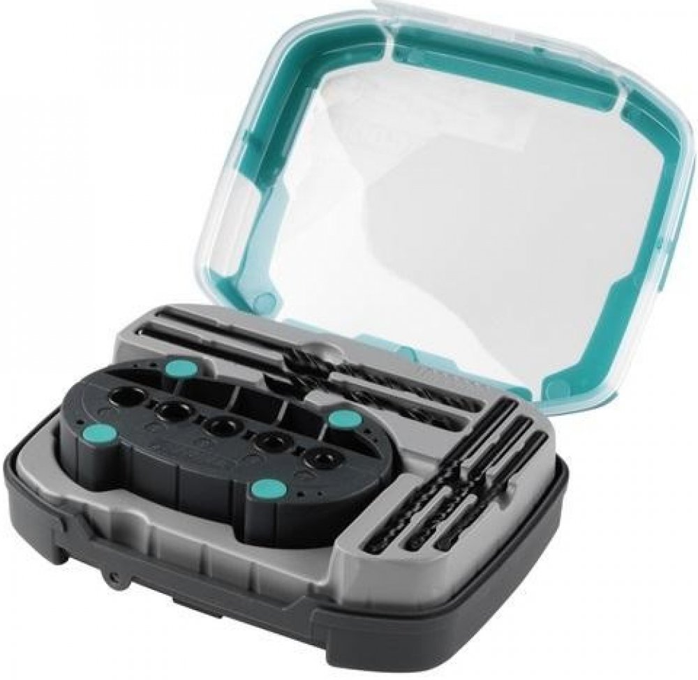 Přesná pomůcka pro dokonalé vrtání svislých děr. Bezpečné umístění na hladkém povrchu díky pryžovým tlumičům. Snadné umístění na kulatém materiálu nebo zaoblených hranách díky drážkám ve tvaru V. Polohovací čáry pro přesné vrtání. 5 přesných kovových vrtacích pouzder pro vrtáky Ø 4, 5, 6, 8 a 10 mm. Obsahuje 5 univerzálních vrtáků o Ø 4, 5, 6, 8 a 10 mm. Kvalitní zavírací box z dvoukomponentního materiálu. Rozsah dodávky 1x mobilní vrtací pomůcka accumobil, 5x univerzálních vrtáků Ø 4, 5, 6, 8, 10 mm.