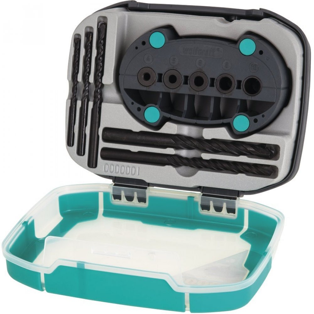 Přesná pomůcka pro dokonalé vrtání svislých děr. Bezpečné umístění na hladkém povrchu díky pryžovým tlumičům. Snadné umístění na kulatém materiálu nebo zaoblených hranách díky drážkám ve tvaru V. Polohovací čáry pro přesné vrtání. 5 přesných kovových vrtacích pouzder pro vrtáky Ø 4, 5, 6, 8 a 10 mm. Obsahuje 5 univerzálních vrtáků o Ø 4, 5, 6, 8 a 10 mm. Kvalitní zavírací box z dvoukomponentního m...