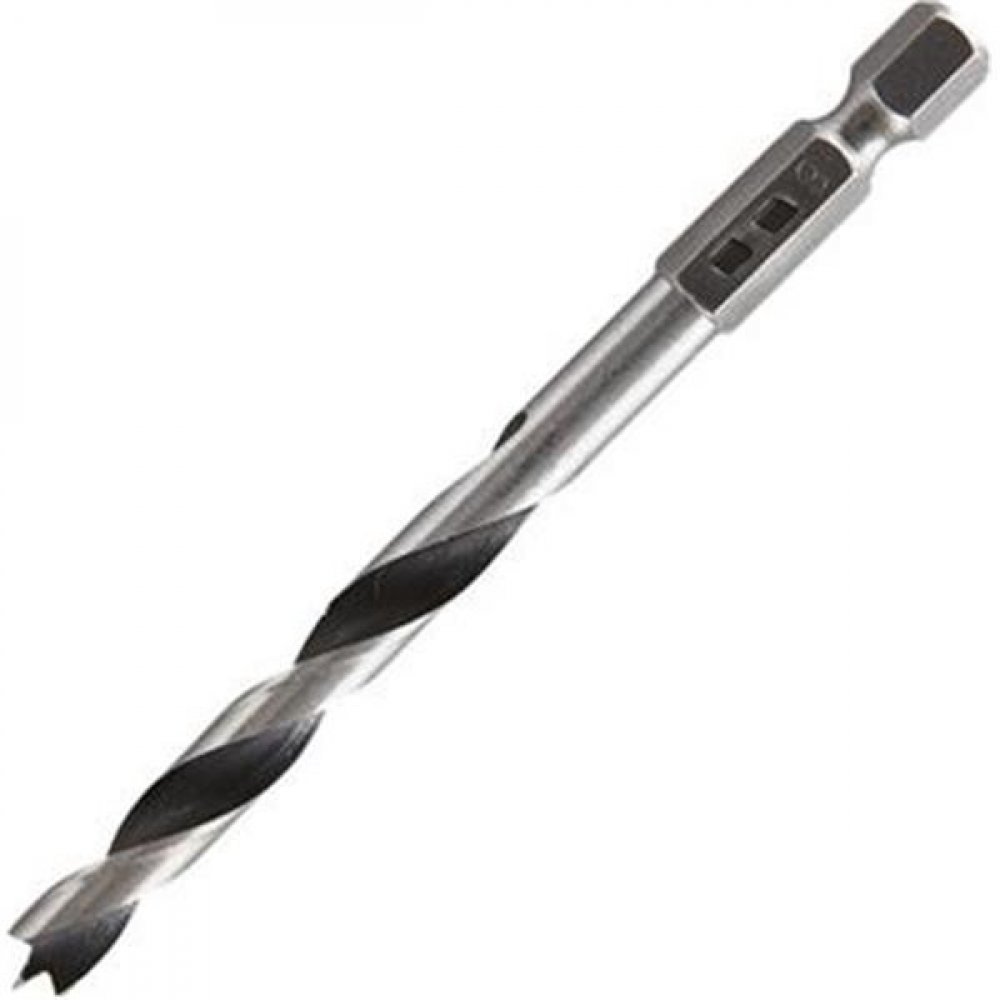 CV spirálové vrtáky do dřeva se 6-hrannou stopkou jsou určeny pro dřevo, překližky, dřevotřískové desky, konstrukční desky. Šestihranná stopka 1/4" pro rychlou výměnu nástroje v držácích bitù. Vysoká životnost. Provedení: kruhově broušené, broušený centrovací hrot, broušený předvrták. Materiál: CV. Baleno v plastovém sáčku s vložkou.