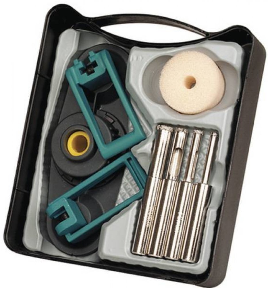 Včetně vodítka s integrovanou houbou pro správné vodní chlazení a přesné vrtání.
