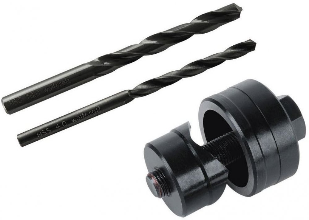 Sada obsahuje kromě frézy na otvory také dva vrtáky do kovu HSS.
